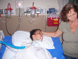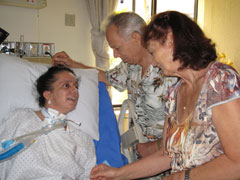 Wir kommen gegen 9.00 Uhr morgen ins Krankenhaus. Zsolt hat die Nacht im Zimmer verbracht. Silka ist am Morgen noch o.k. Uwe ruft an und spricht mit ihr, es bewegt sie sehr. Gegen Mittag ploetzlich eine dramatische Verschlechterung ihres Zustandes, sie hat auf einmal hohes Fieber 102 Grad Fahrenheit. ihr Herz rast und der Puls ist auf 132. Sie hat wieder Durchfall. Der Beatmungstechniker ist gezwungen, die Maschine wieder anzustellen. Ich bitte die Schwester, dass ein Arzt gerufen wird. Es wird telefoniert, die Aerztin ordnet per Telefon eine Blutuntersuchung und einen Urintest an. Wir gehen erst spaet nach Hause, das Fieber ist wieder gesunken, der Puls hat sich etwas stabiliert. Silka ist voellig aphatisch. Gegen 22.30 ruft Kristina nochmals an, sie sagt, dass die Temperatur und auch der Puls wieder normal seien. Das Blasenkatheder sei entfernt worden. sie wollen versuchen, ob Silka ohne Katheder auskommt.